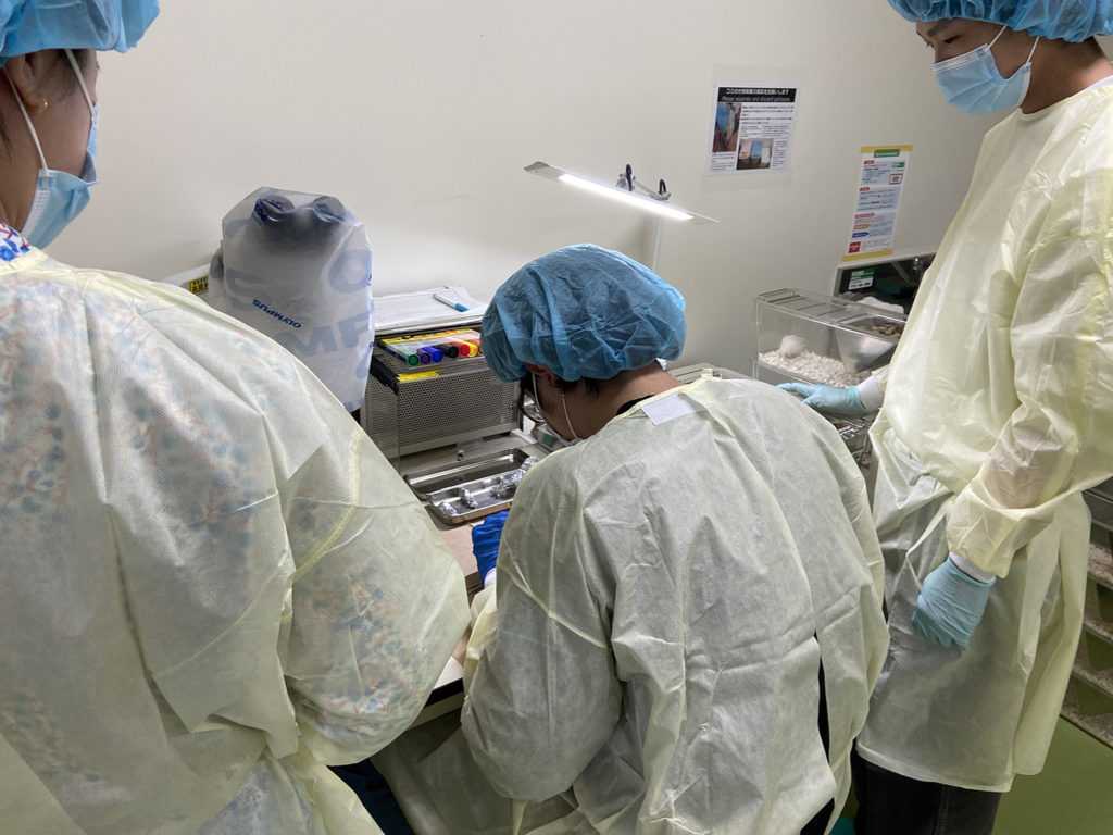 3年生3名が実験に取り組んでいます。