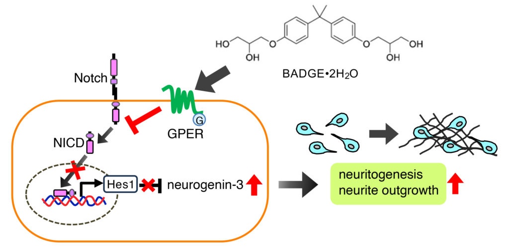 BADGEはGタンパク質共役型エストロゲン受容体を介してニューロンの突起伸長を促進させることがわかりました.